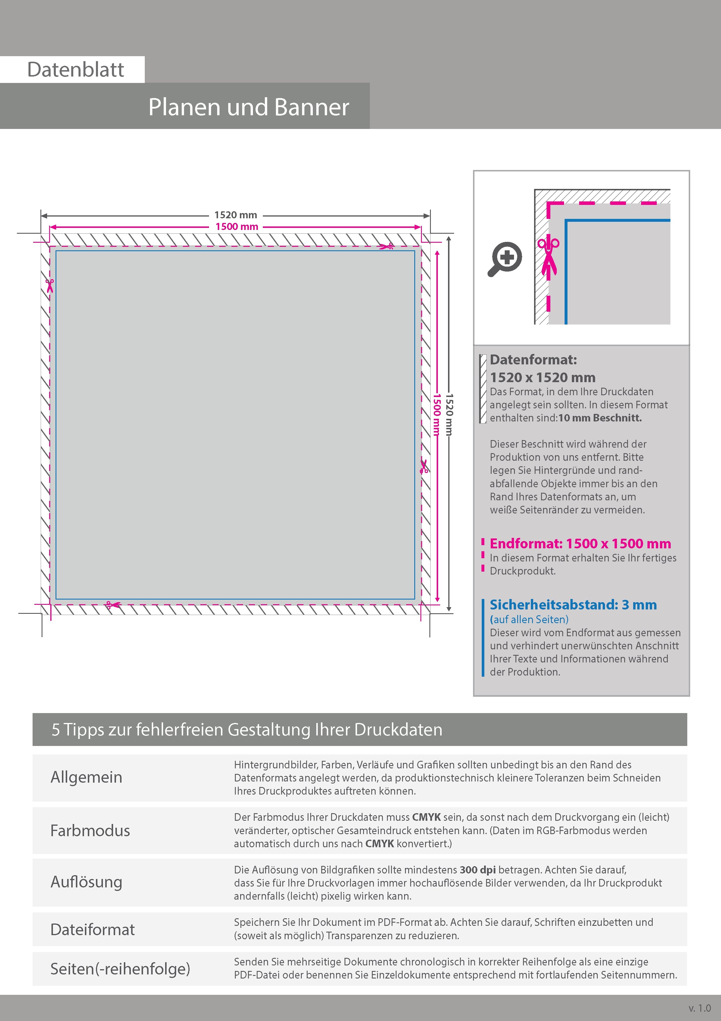 Hochwertige Stoff-Banner 150 x 150 cm, 4/0-farbig bedruckt, plano
